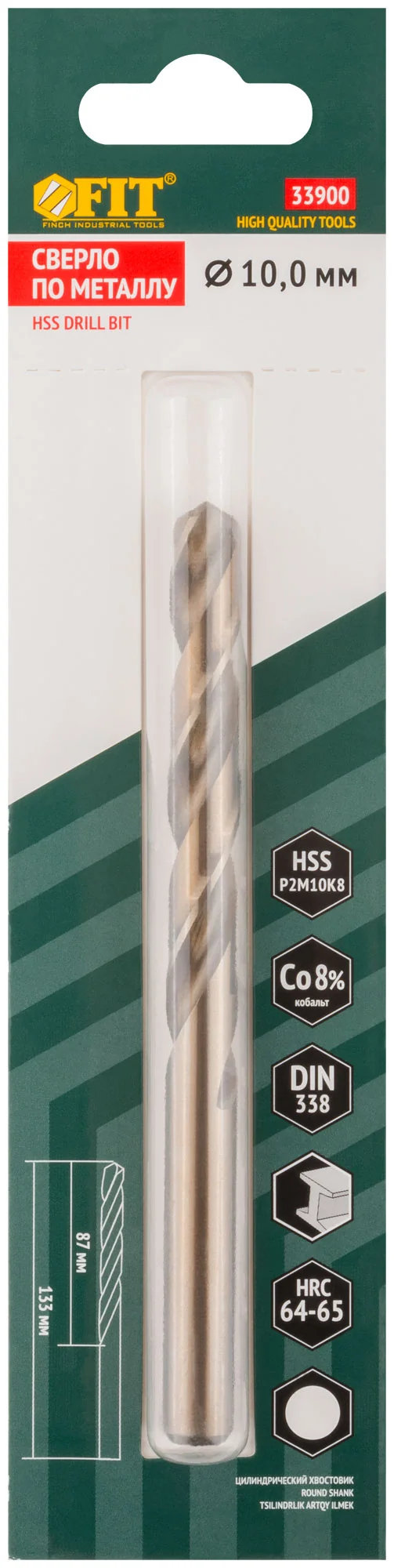 Сверла по металлу HSS с добавкой кобальта 8% Профи ( М42 ) в блистере 10,0х133 мм ( 1 шт.)