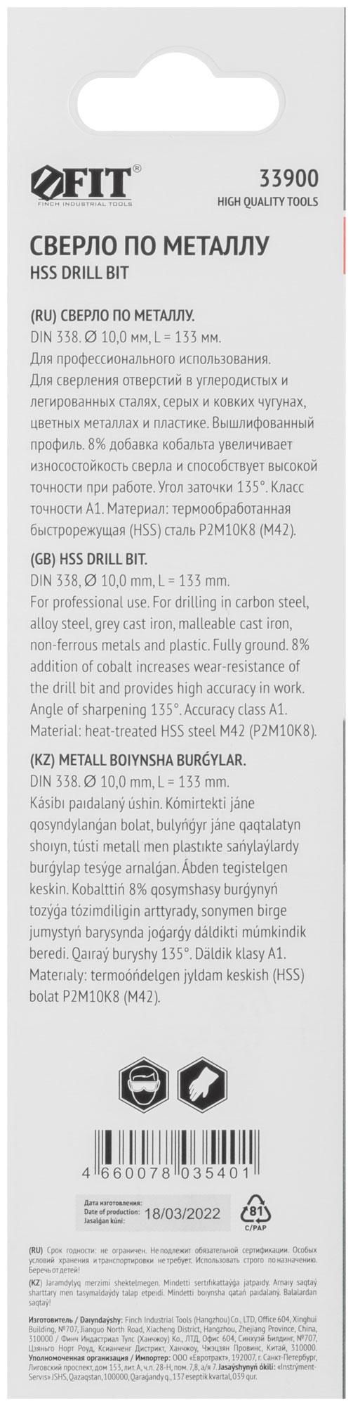 Выберите сверло FIT 33900, чтобы обеспечить надежную и точную работу при сверлении металлов.