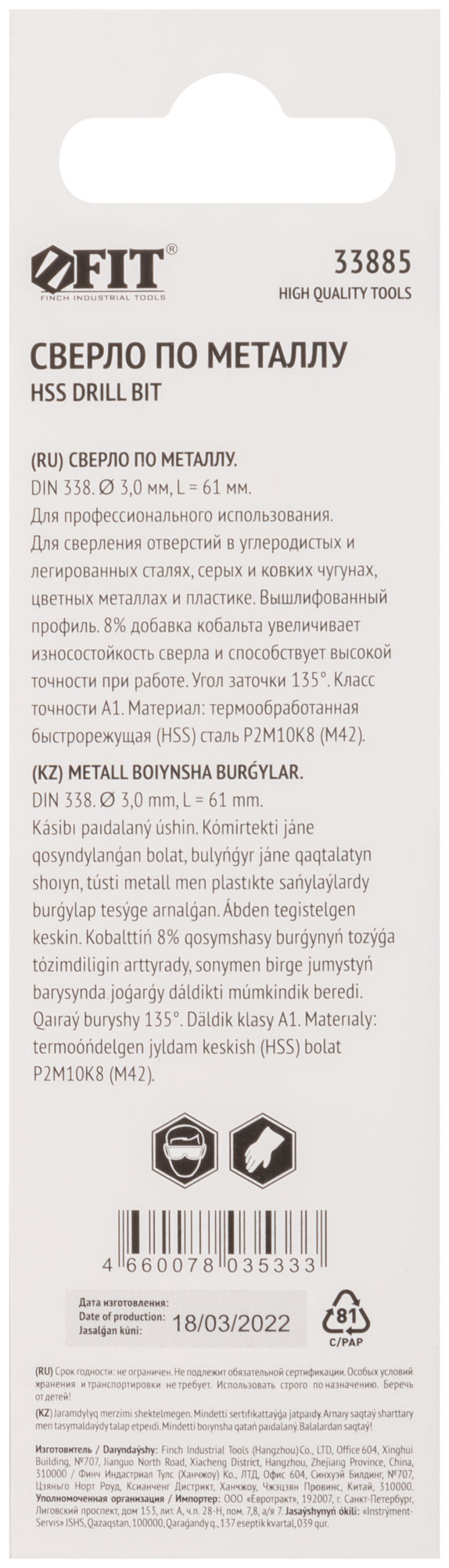 Выберите сверло FIT 33885, чтобы обеспечить надежное и точное сверление металла в своих проектах.