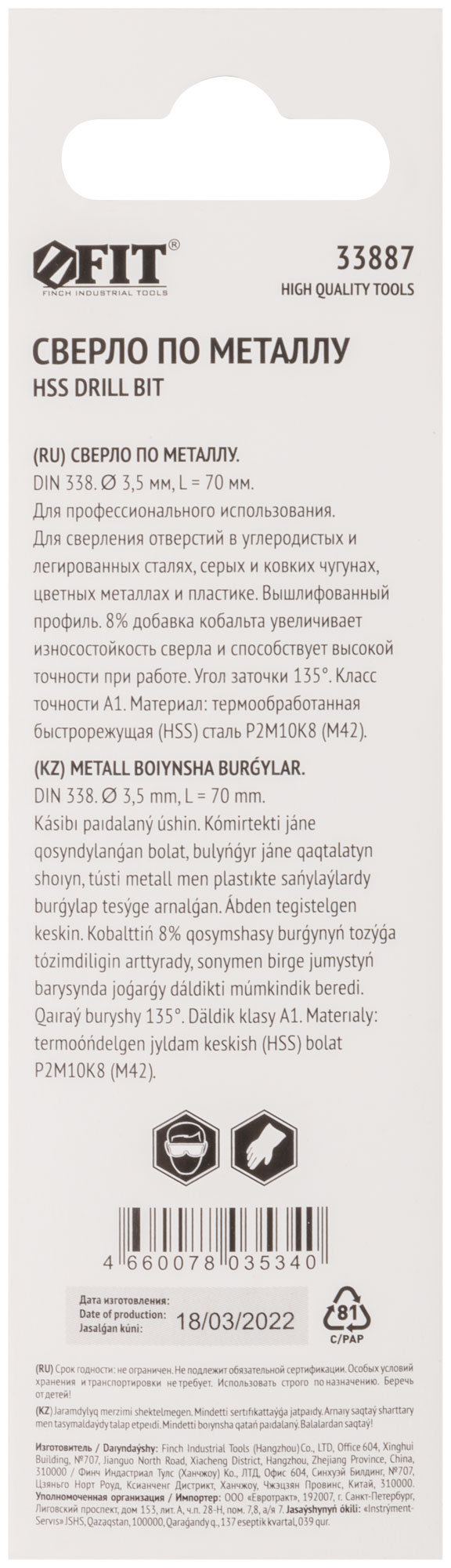 Выберите сверло FIT 33887, чтобы обеспечить точное и долговечное сверление металлов в ваших проектах.