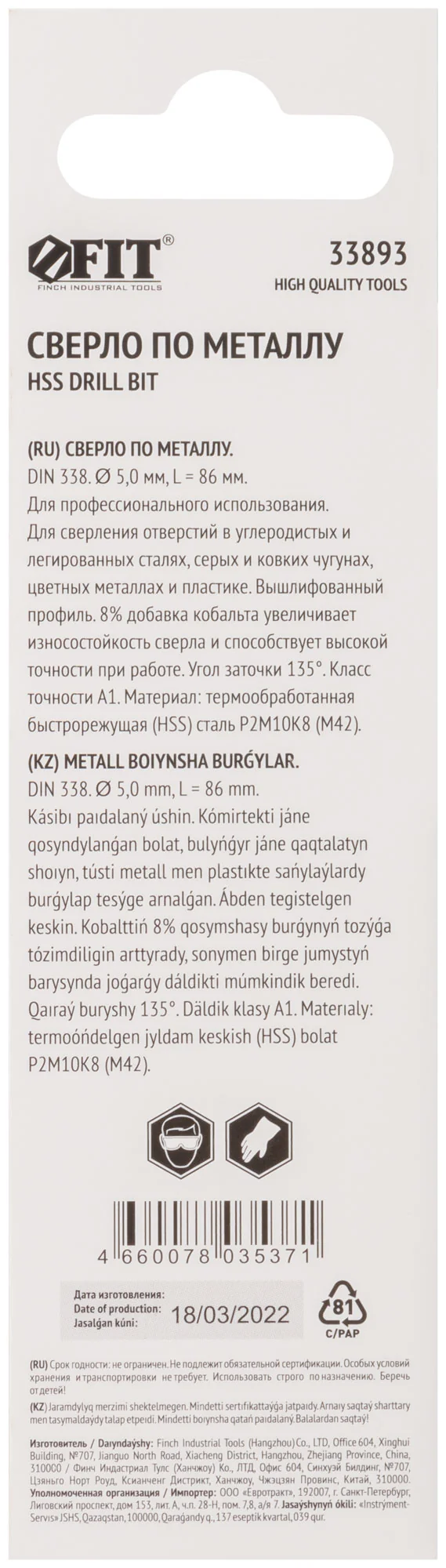 Выберите сверло HSS с кобальтом от FIT, чтобы обеспечить высокую производительность и долговечность вашего инструмента.