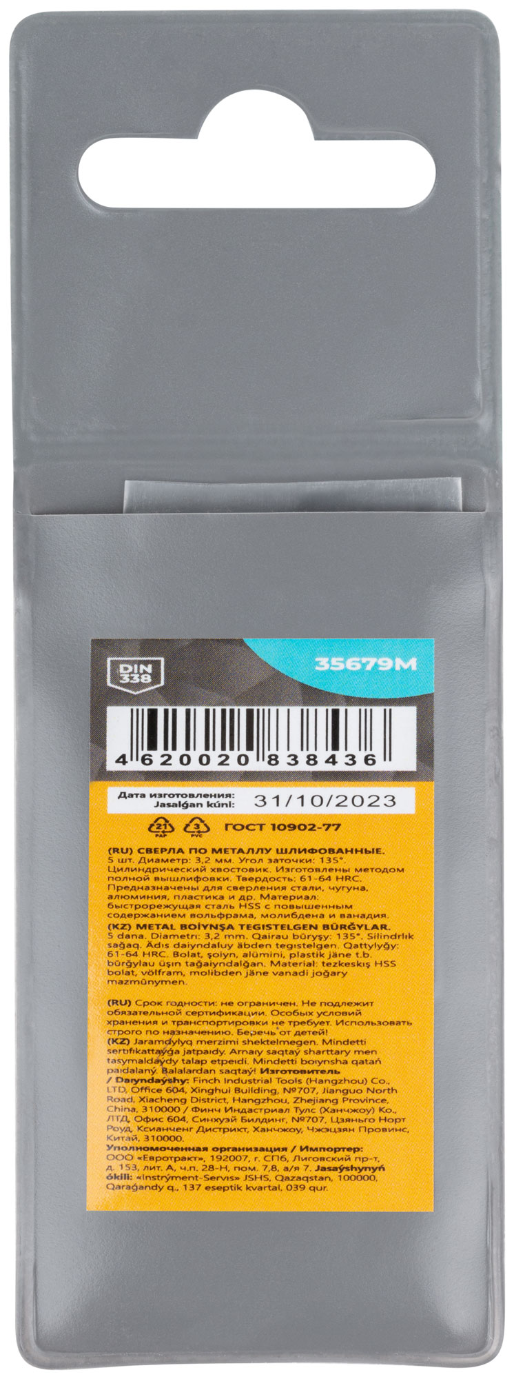 Набор из 5 сверл в удобной упаковке с подвесом делает транспортировку и хранение легкими и безопасными. Такие сверла подходят для частого использования в профессиональных условиях.
