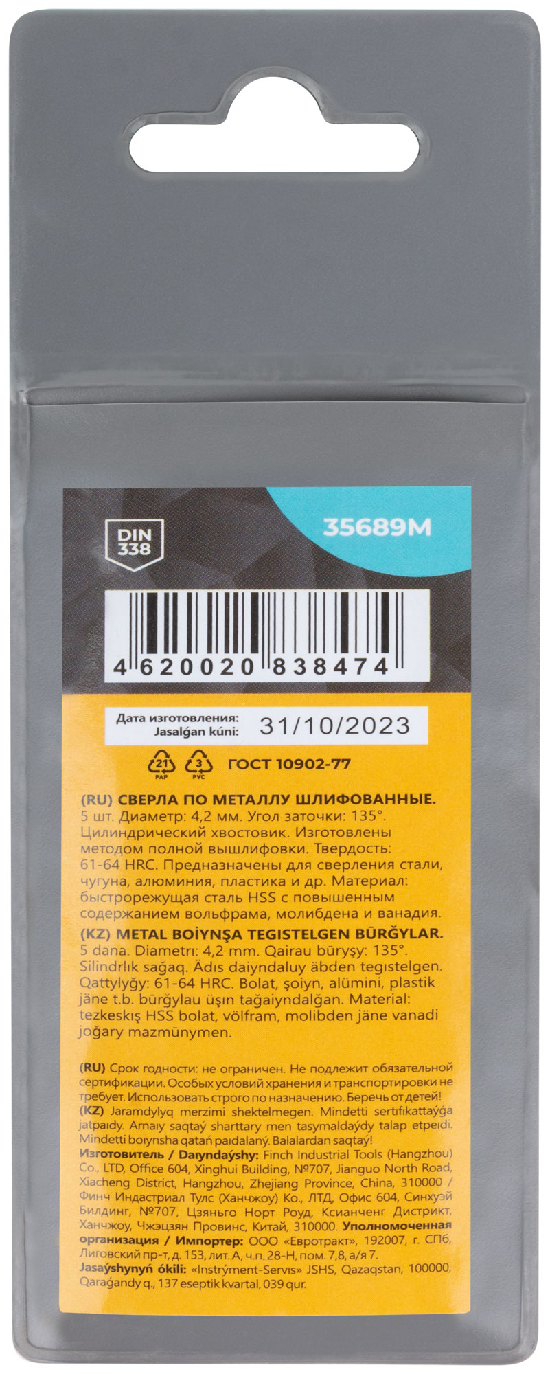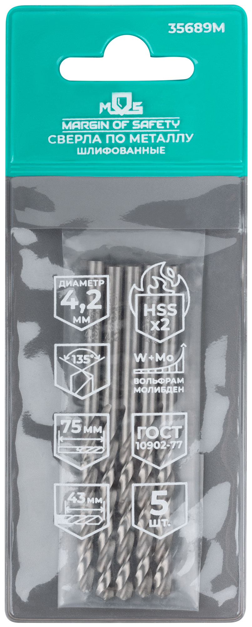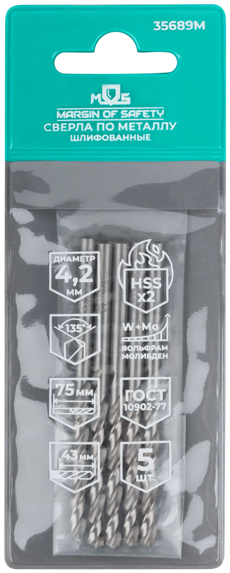 Сверла по металлу HSS 4,2 x 75 мм с углом заточки 135°