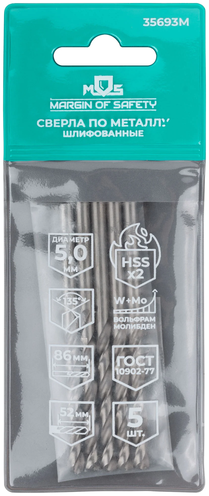 - 5 сверл по металлу HSS 5,0 x 86 мм