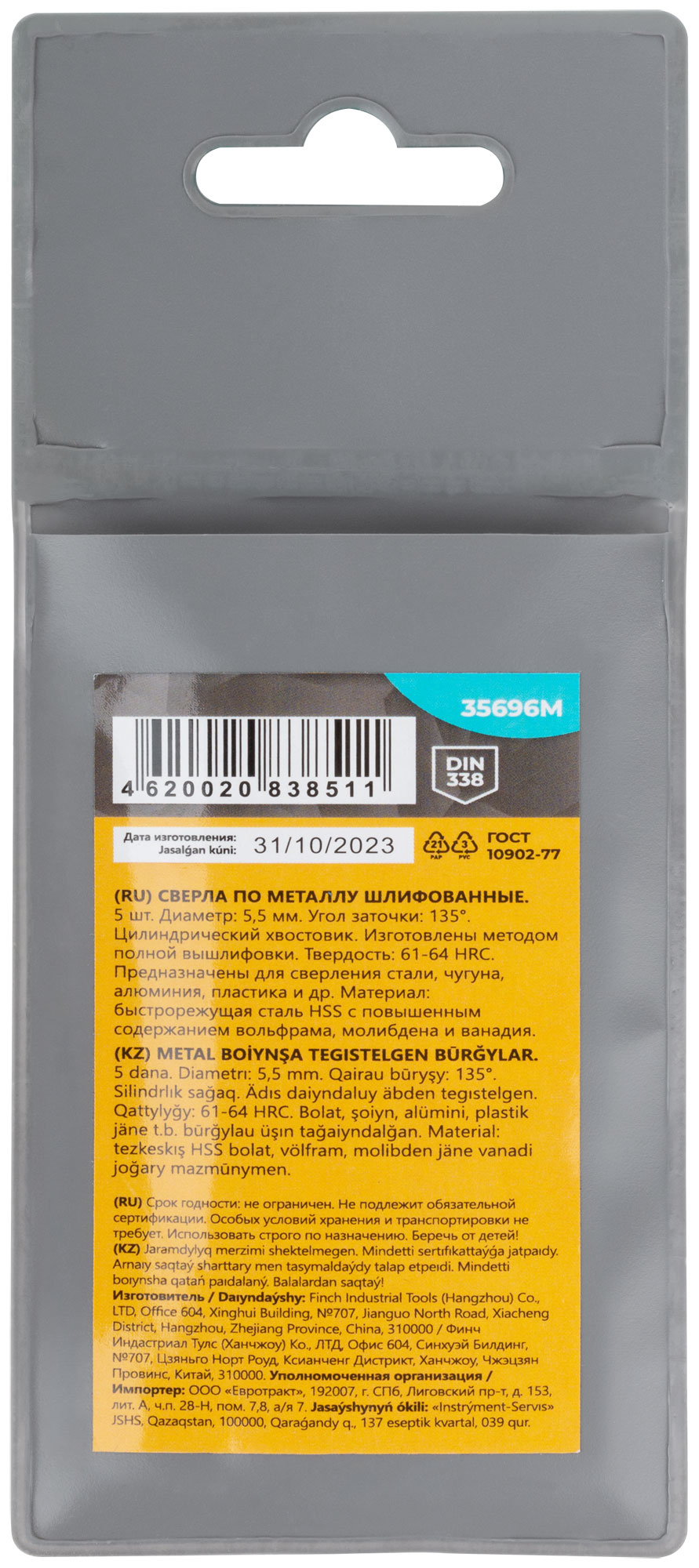 Сверла изготовлены методом полной шлифовки, что обеспечивает их долговечность и устойчивость к нагрузкам. Цилиндрический хвостовик обеспечивает надежную фиксацию в патроне, а материал — быстрорежущая сталь с повышенным содержанием вольфрама, молибдена и ванадия — гарантирует высокую производительность.