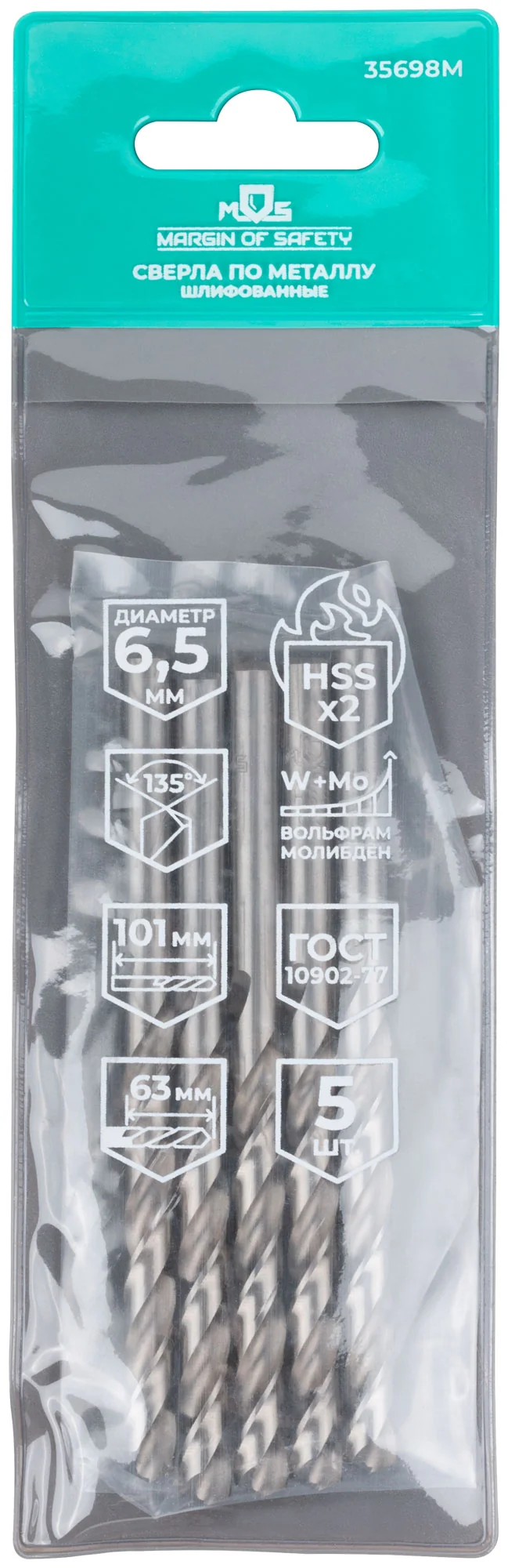 Набор включает пять сверл диаметром 6,5 мм и длиной 101 мм. Такой комплект идеально подходит для использования в профессиональных условиях, где требуется высокая точность и надежность.