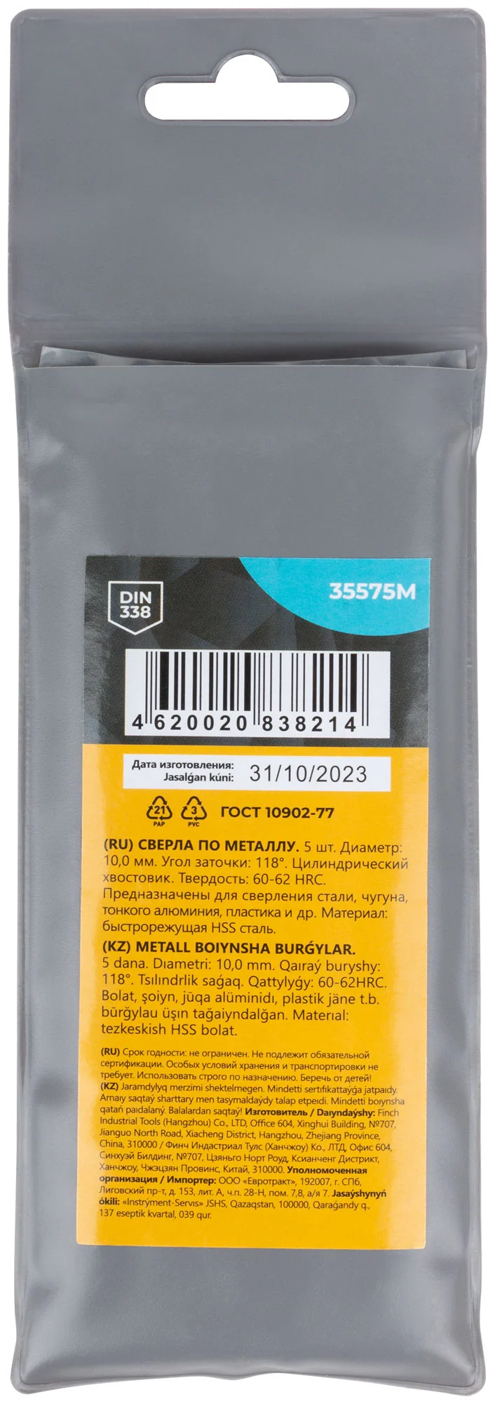 Сверла изготовлены из быстрорежущей стали HSS4241, что обеспечивает высокую прочность и долговечность. Угол заточки 118° способствует оптимальному сверлению, а цилиндрический хвостовик упрощает установку в патрон.
