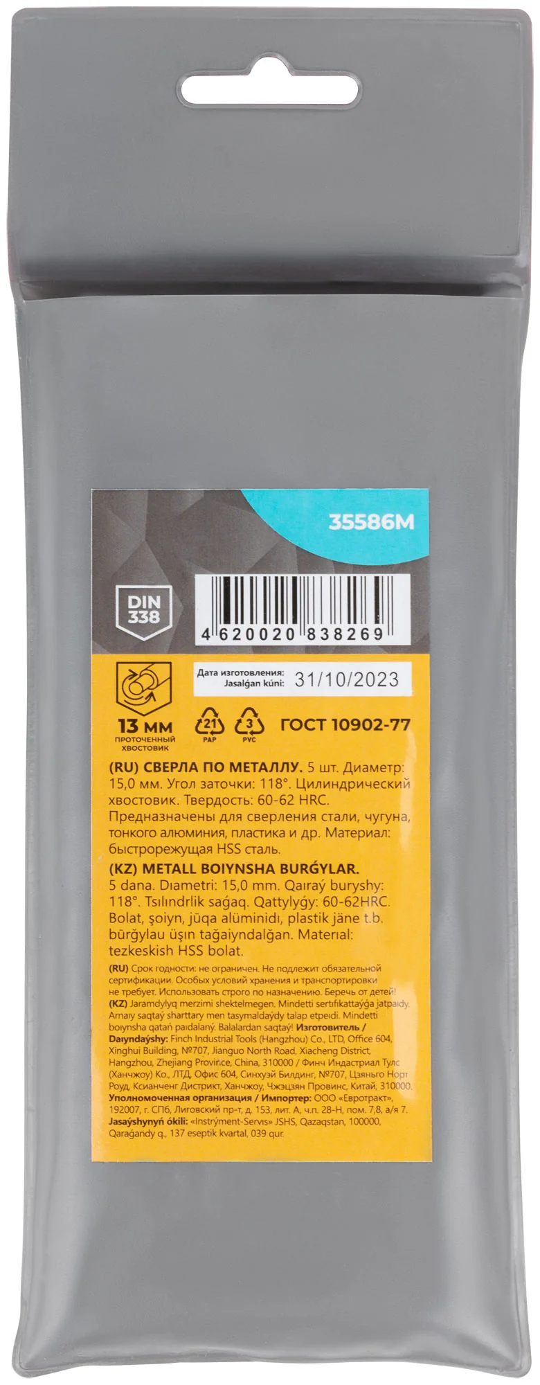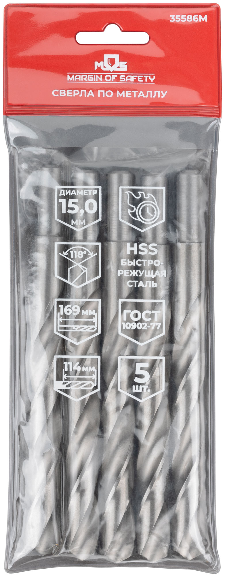 Сверла по металлу HSS 15,0 x 169 мм с углом заточки 118° для точной обработки