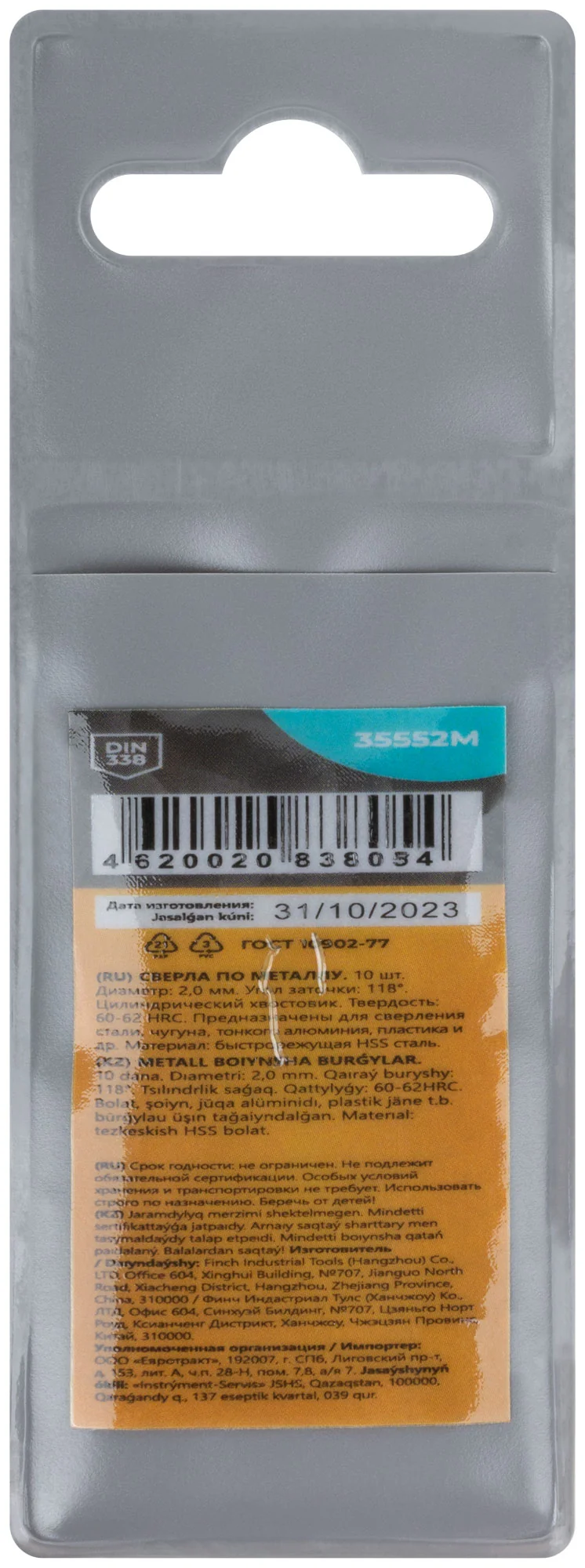 - Угол заточки 118° — для легкого и точного сверления.