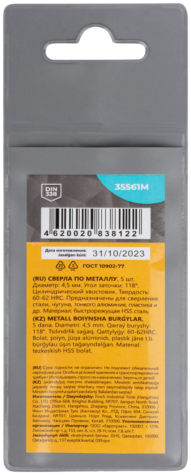 Комплект сверл MOS диаметром 4,5 мм и длиной 80 мм незаменим для работы с металлом. Эти сверла идеально подходят для точности и скорости сверления, обеспечивая гладкие и точные отверстия в различных металлических поверхностях.