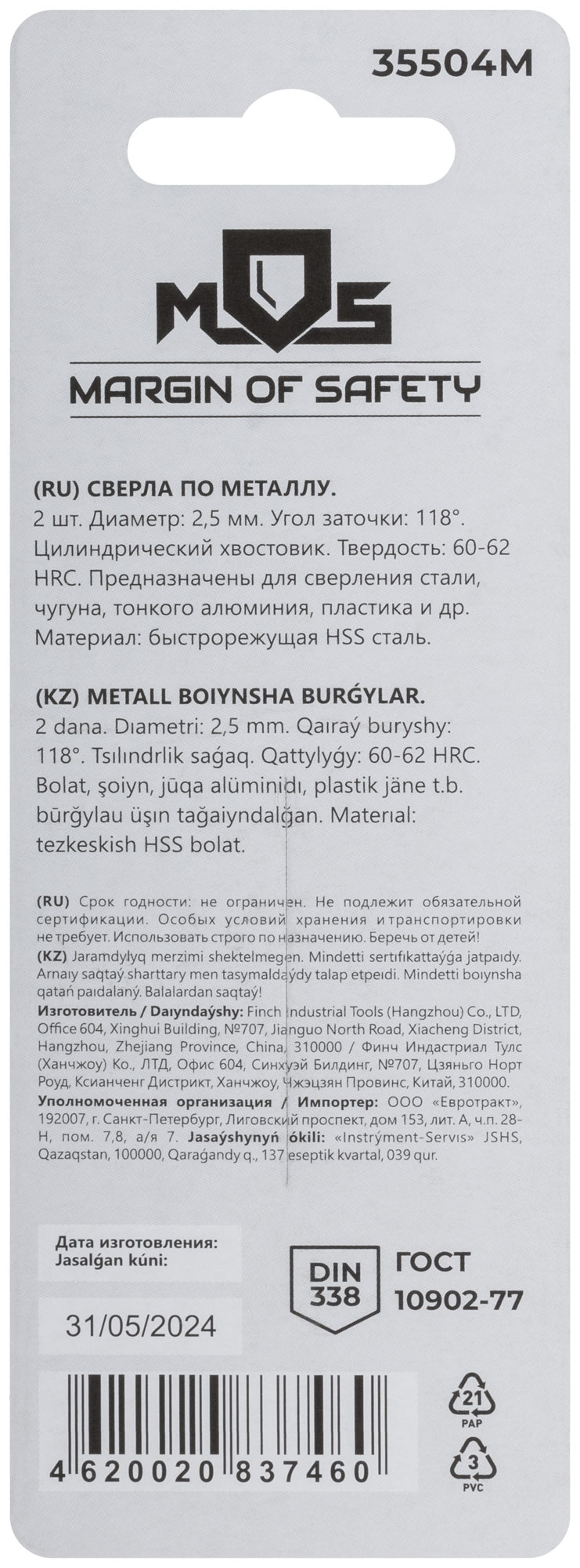 Сверла изготовлены из быстрорежущей стали HSS4241, что гарантирует их долговечность и высокую износостойкость. Угол заточки 118° позволяет эффективно работать с различными типами металлов. Упаковка в блистере облегчает хранение и защиту сверл от повреждений.