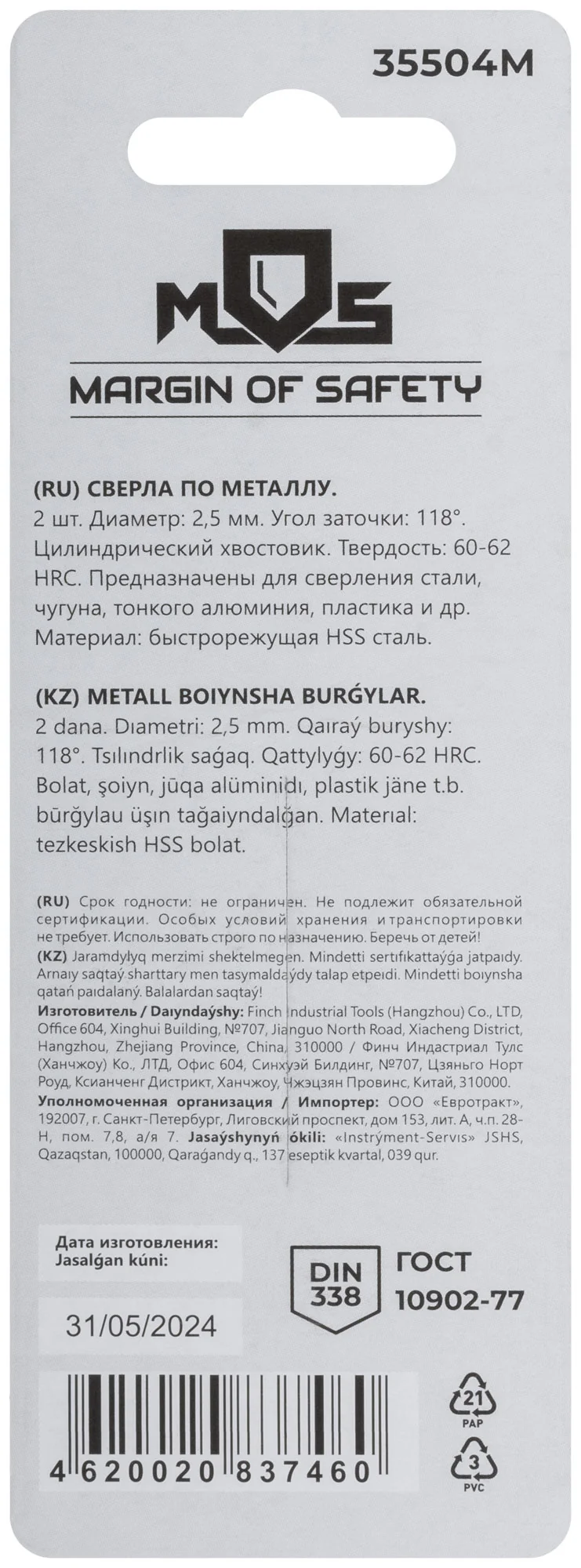 Выберите сверла MOS 35504М, чтобы обеспечить себе надежность и точность в работе с металлом.