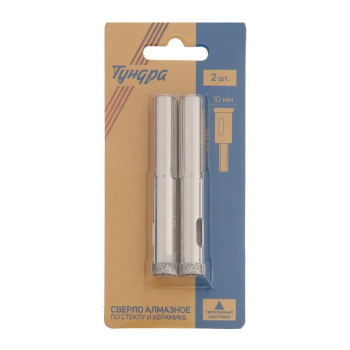 Сверло алмазное по стеклу и керамике ТУНДРА, трехгранный хвостовик, 10×65 мм, 2 шт. — Характеристики