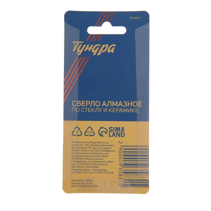Сверло алмазное по стеклу и керамике с трехгранным хвостовиком ТУНДРА предназначено для совместного использования с дрелью.