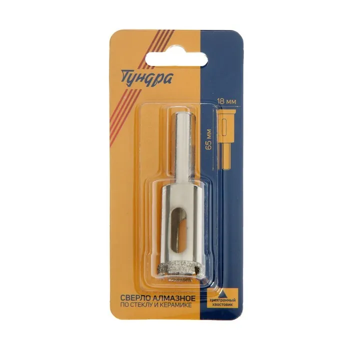 Сверло алмазное по стеклу и керамике ТУНДРА, трехгранный хвостовик, 18×65 мм — Характеристики