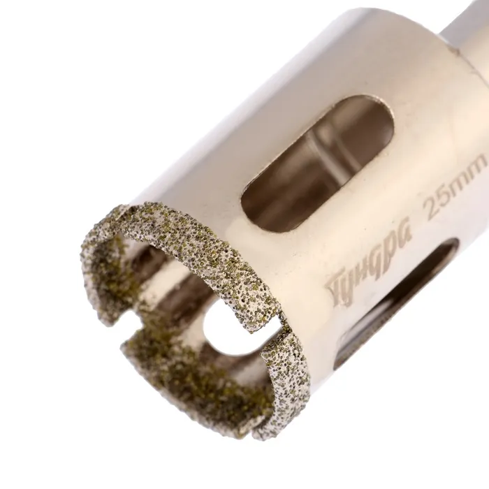 Сверло алмазное по стеклу и керамике ТУНДРА, трехгранный хвостовик, 25×65 мм — Характеристики