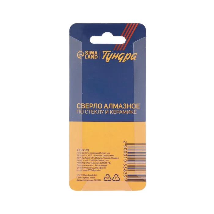 Сверло алмазное по стеклу и керамике с трехгранным хвостовиком ТУНДРА предназначено для совместного использования с дрелью.