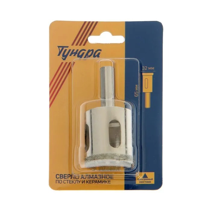 Современное "алмазное сверло по стеклу и керамике" станет вашим надежным помощником при работе с деликатными материалами. Диаметр сверла - 32 мм, длина - 65 мм. Оно оснащено трехгранным хвостовиком, который обеспечивает крепкую фиксацию в патроне и снижает риск проскальзывания. С таким инструментом сверление стеклянных и керамических поверхностей станет точным и безопасным процессом.