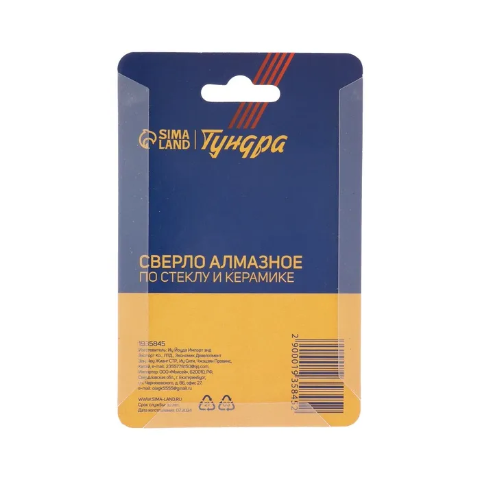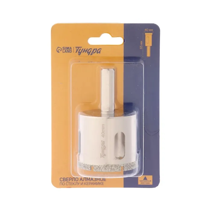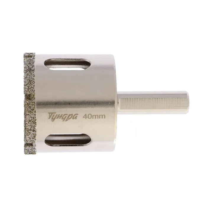Сверло алмазное по стеклу и керамике ТУНДРА, трехгранный хвостовик, 40×65 мм — Характеристики