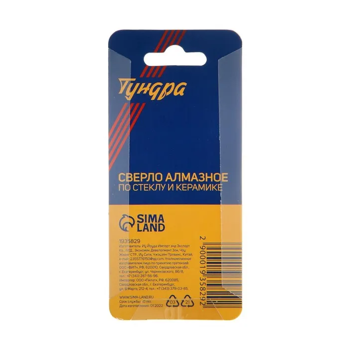 Сверло алмазное по стеклу и керамике с трехгранным хвостовиком ТУНДРА предназначено для совместного использования с дрелью.