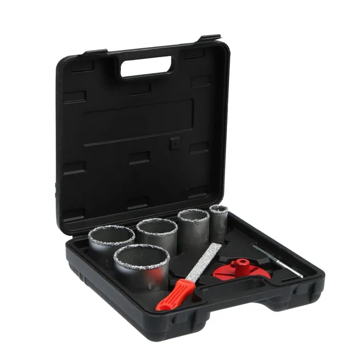 Инструмент имеет головку с алмазным напылением, благодаря которому выходят точные и аккуратные отверстия.