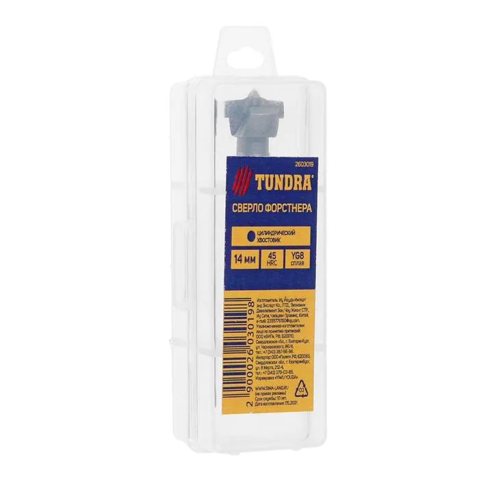 Сверло Форстнера ТУНДРА, твердосплавные пластины, цилиндрический хвостовик, 14 мм — Характеристики