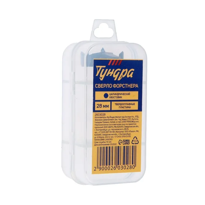 Сверло Форстнера ТУНДРА, твердосплавные пластины, цилиндрический хвостовик, 28 мм — Характеристики