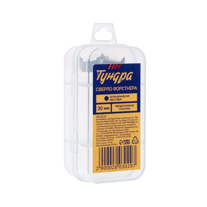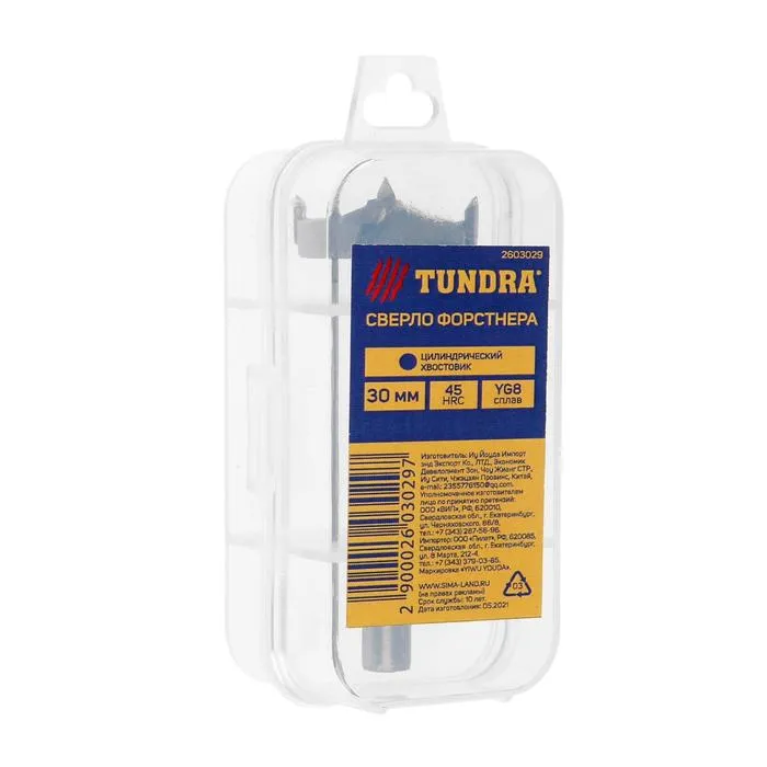 Сверло Форстнера ТУНДРА, твердосплавные пластины, цилиндрический хвостовик, 30 мм — Характеристики