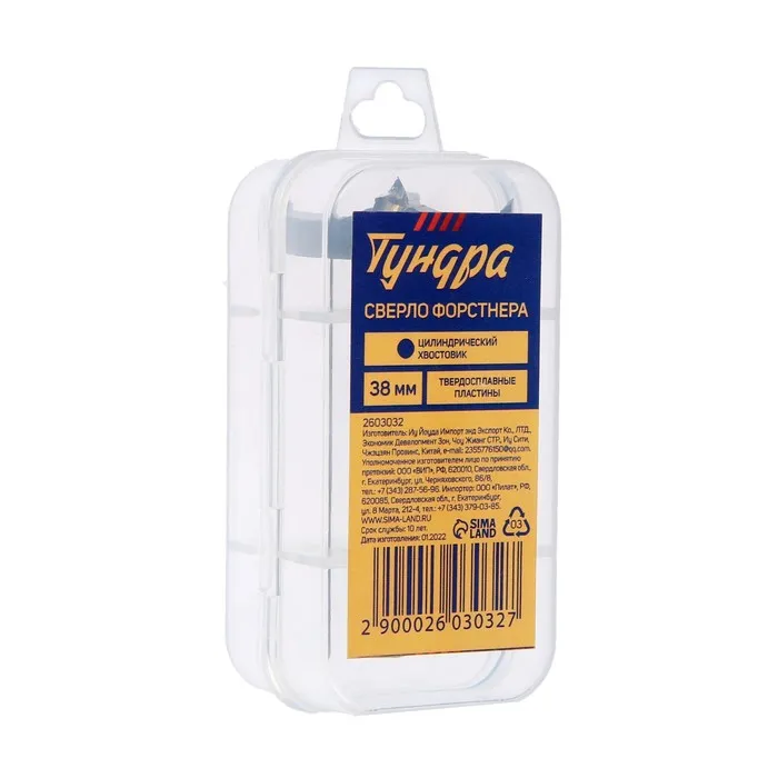 Сверло Форстнера ТУНДРА, твердосплавные пластины, цилиндрический хвостовик, 38 мм — Характеристики