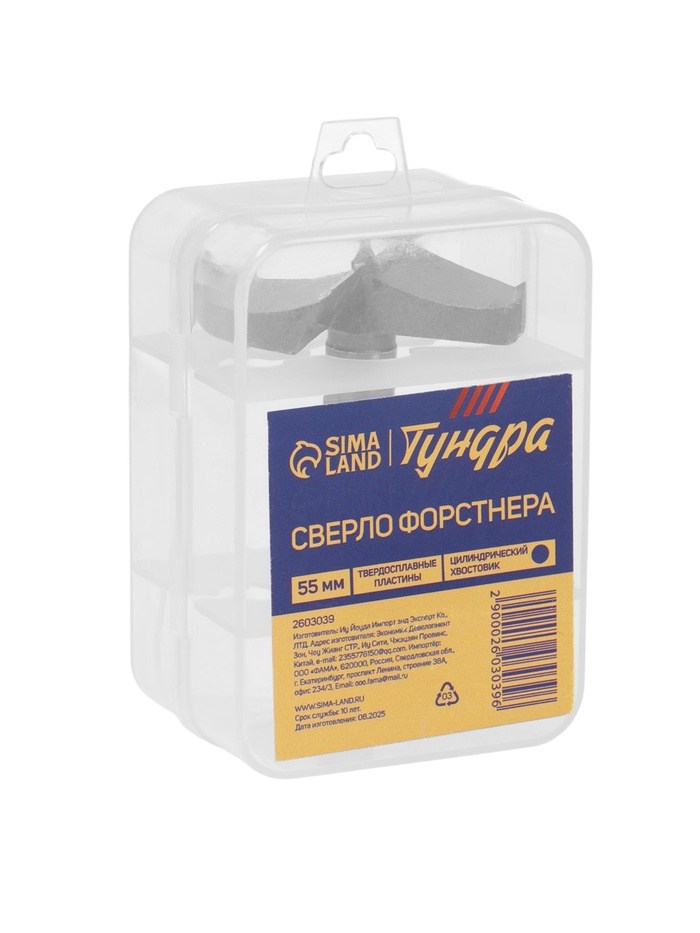 Сверло Форстнера ТУНДРА, твердосплавные пластины, цилиндрический хвостовик, 55 мм — Характеристики