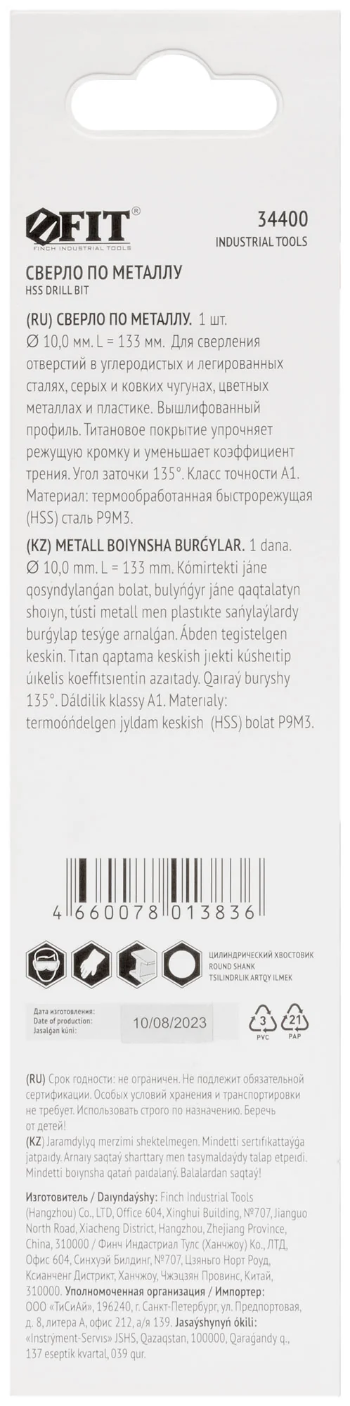 Это сверло идеально подходит для точного сверления металла. Благодаря титановому покрытию и быстрорежущей стали, оно обеспечивает долговечность и высокую производительность при работе с различными металлическими поверхностями.