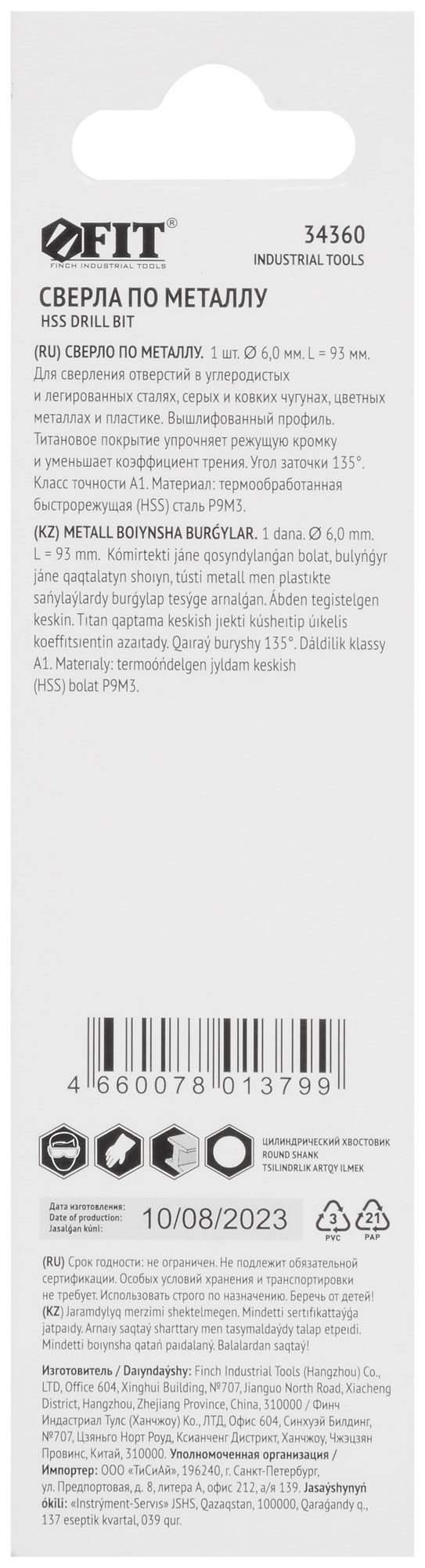 Выберите сверло HSS 6,0 мм с титановым покрытием, артикул 34360, чтобы обеспечить качество и долговечность ваших проектов.