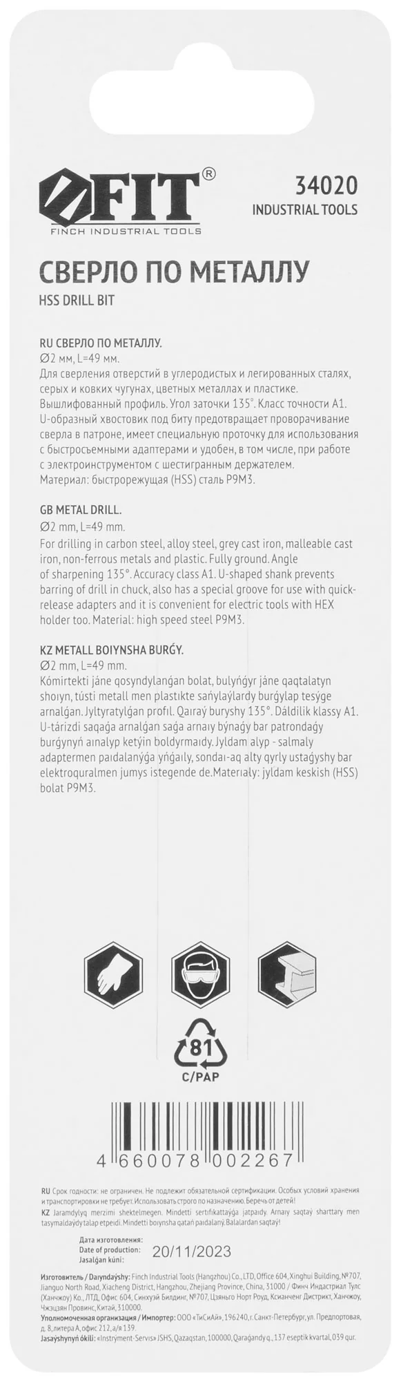Выберите сверло HSS 2,0 мм от FIT, чтобы обеспечить точность и надежность ваших проектов в металлообработке.