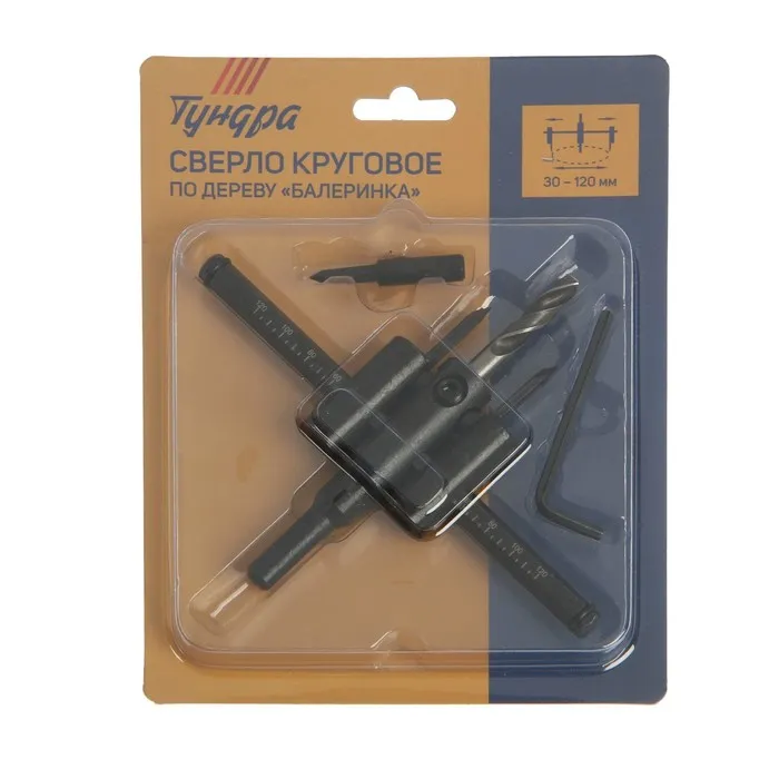 Сверло круговое регулируемое по дереву ТУНДРА «Балеринка», 30 - 120 мм — Характеристики