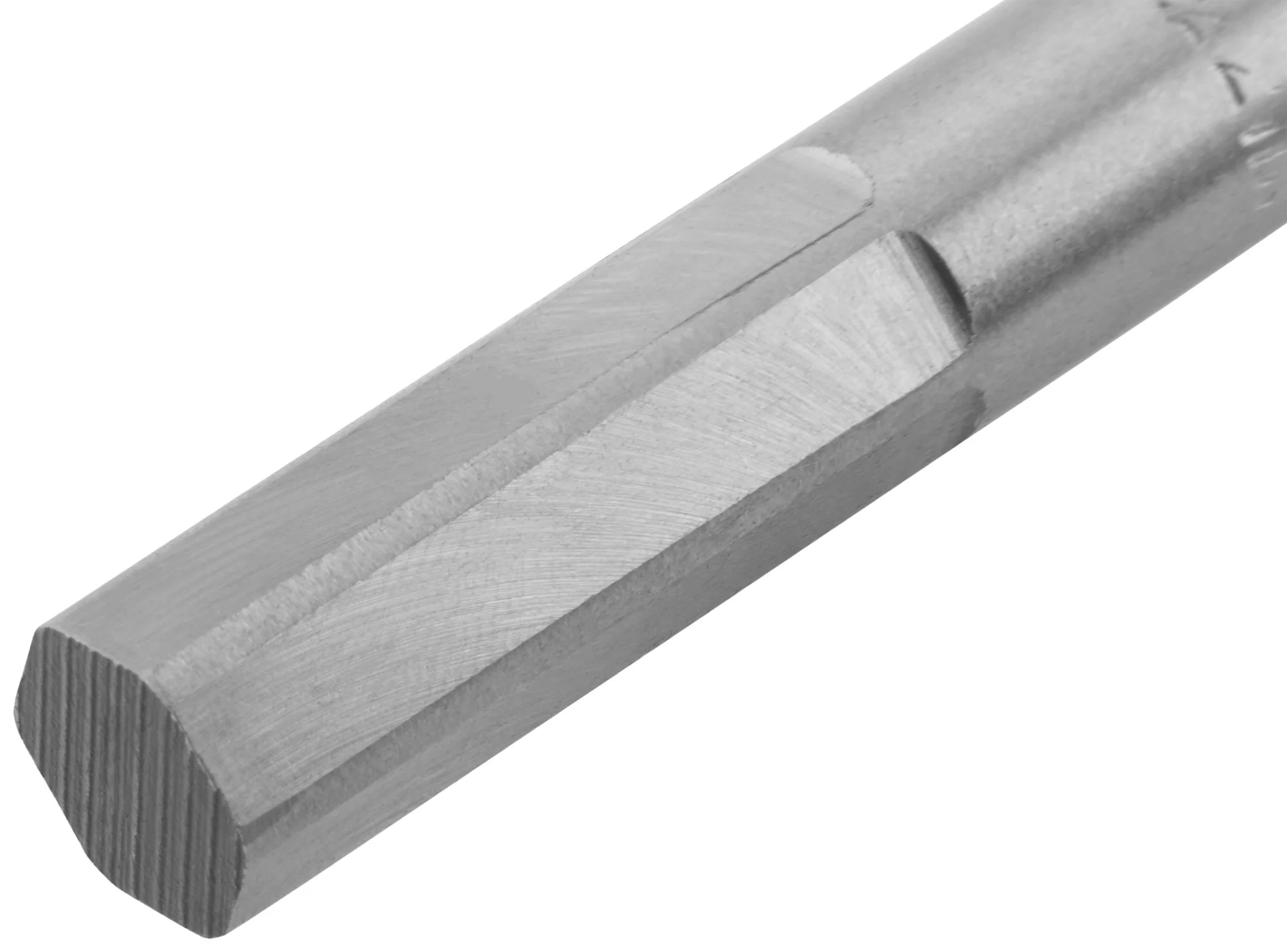 Профессиональное качество сверла обеспечивает точность и скорость работы, а винтовая конструкция позволяет эффективно удалять стружку из отверстия, предотвращая засорение и перегрев.
