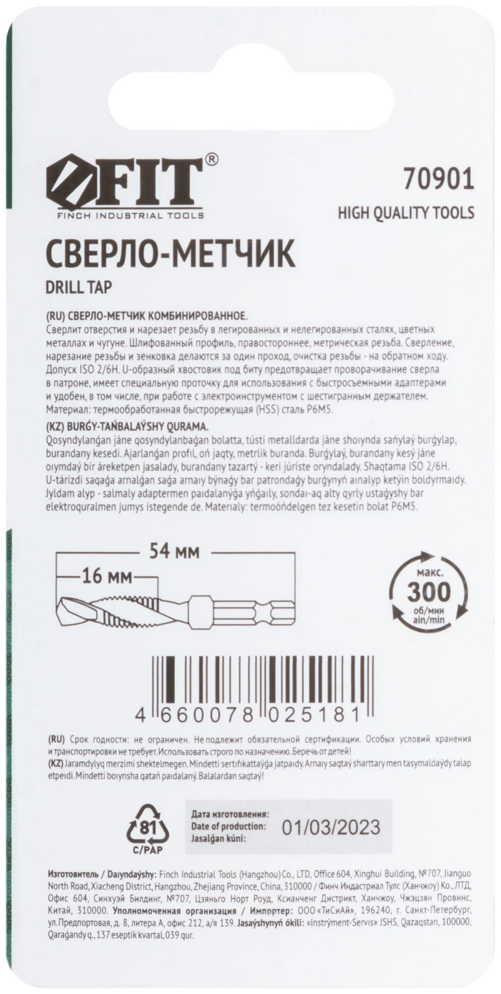 Это сверло-метчик FIT станет незаменимым инструментом для профессионалов, работающих с легированными и нелегированными сталями, цветными металлами и чугуном. Оно позволяет выполнять сверление и нарезание метрической резьбы в одном рабочем цикле, что экономит время и повышает эффективность на производственной площадке.