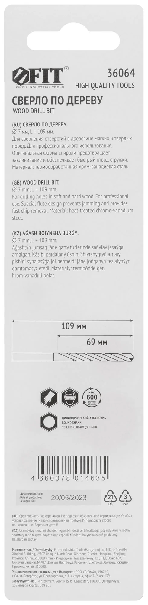 Выберите сверло FIT 36064, чтобы обеспечить себе надежный и долговечный инструмент для работы с древесиной.