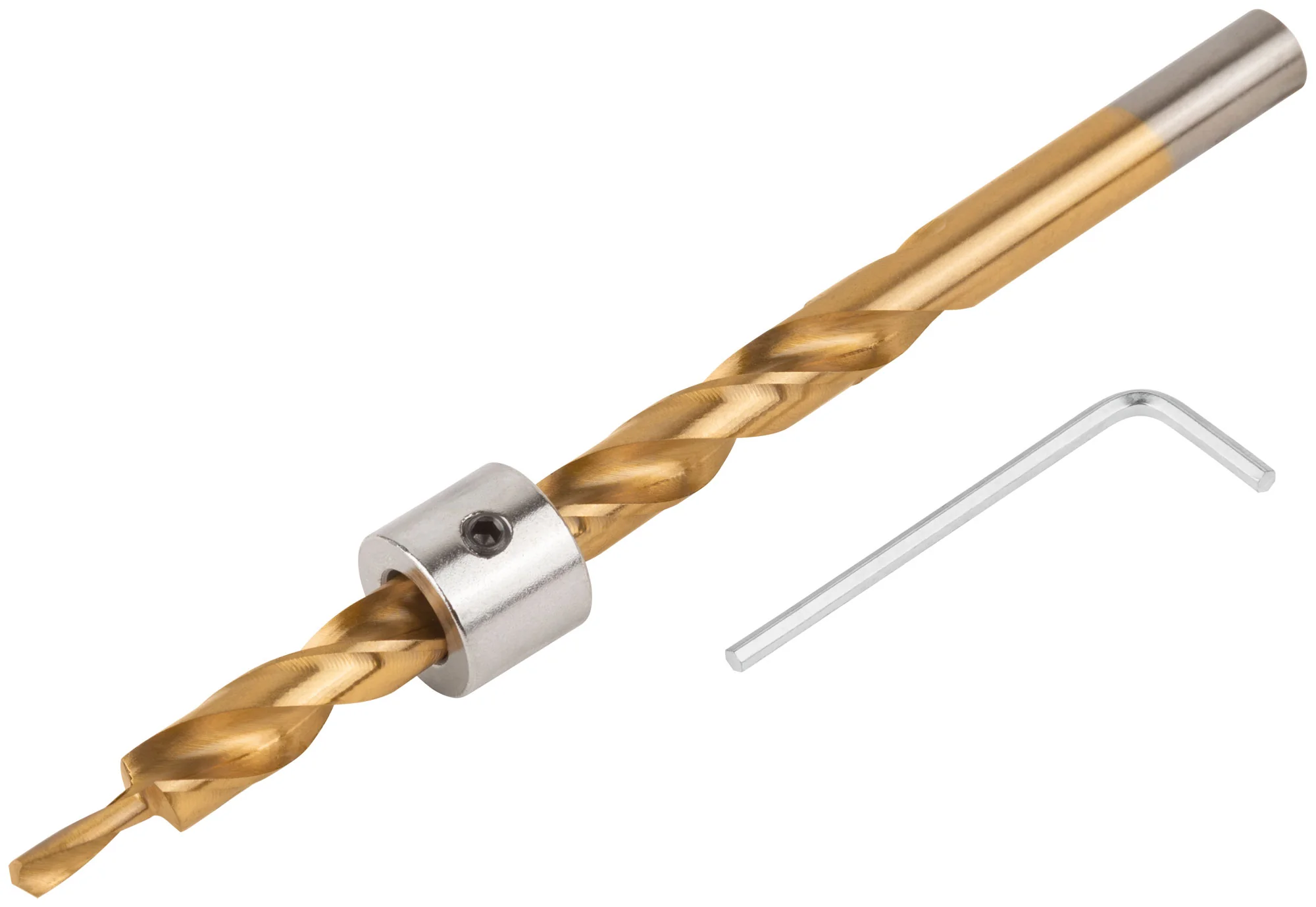 Изготовлено из быстрорежущей стали с нитрид-титановым покрытием, что обеспечивает долговечность и стойкость к износу. Комплектуется ограничителем глубины и шестигранным ключом для удобной настройки.