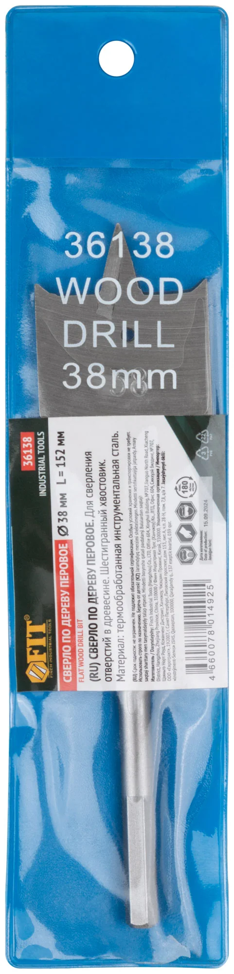 Сверло FIT 38x152 мм обладает высокой производительностью и точностью, что делает его идеальным выбором для профессиональных столяров и плотников.