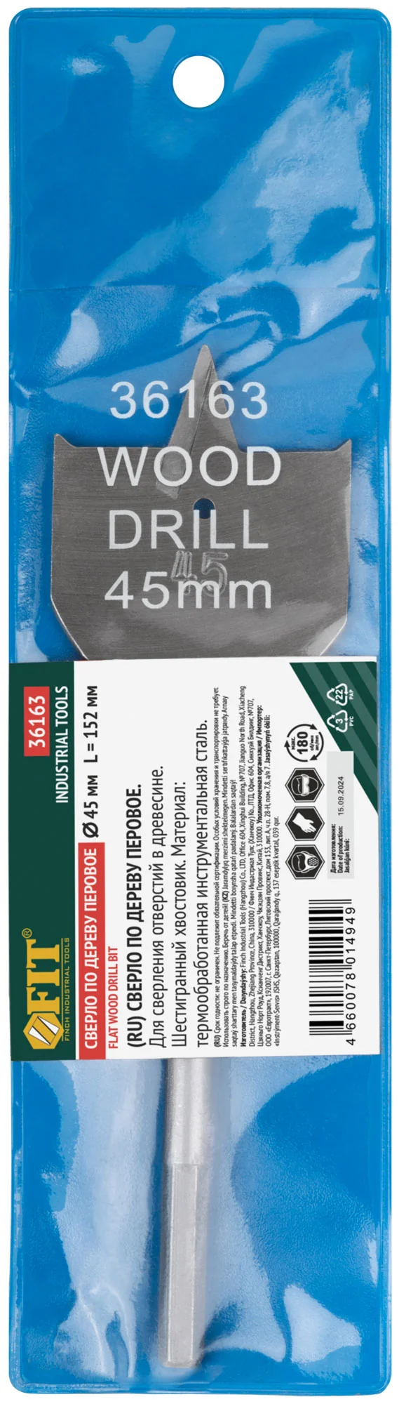 Сверло по дереву перовое 45x152 мм FIT идеально подходит для быстрого и точного сверления отверстий в деревянных поверхностях. Незаменимо при работе над плотницкими и столярными проектами, где требуется высокая точность и аккуратность.