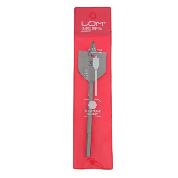 Сверло по дереву перовое ЛОМ, шестигранный хвостовик, 36×152 мм — Характеристики