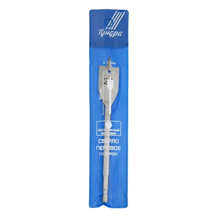 Сверло по дереву перовое с шестигранным хвостовиком ТУНДРА предназначено для совместного использования с дрелью.