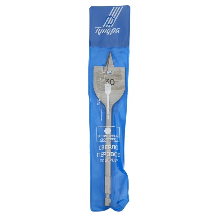 Сверло по дереву перовое с шестигранным хвостовиком ТУНДРА предназначено для совместного использования с дрелью.