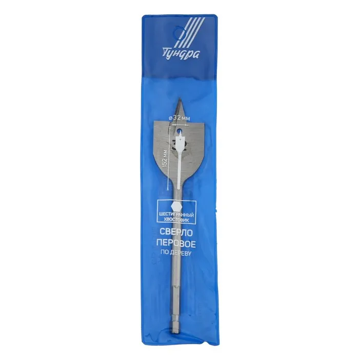 Сверло по дереву перовое с шестигранным хвостовиком ТУНДРА предназначено для совместного использования с дрелью.