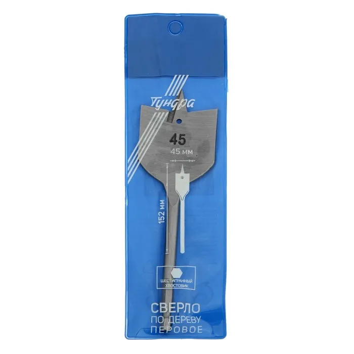 Сверло по дереву перовое ТУНДРА, шестигранный хвостовик, 45×152 мм — Характеристики
