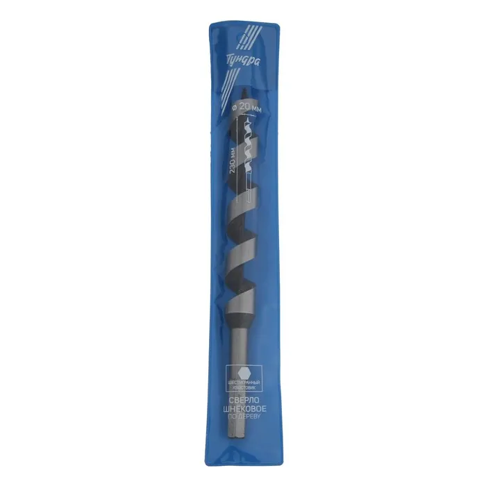 Сверло по дереву шнековое ТУНДРА, шестигранный хвостовик, 20×230 мм — Характеристики
