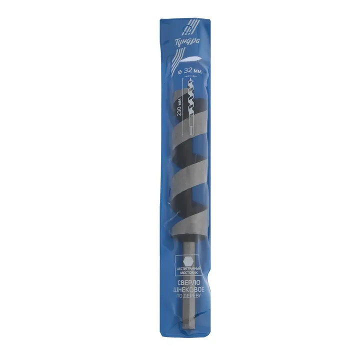 Сверло по дереву шнековое ТУНДРА, шестигранный хвостовик, 32×230 мм — Характеристики