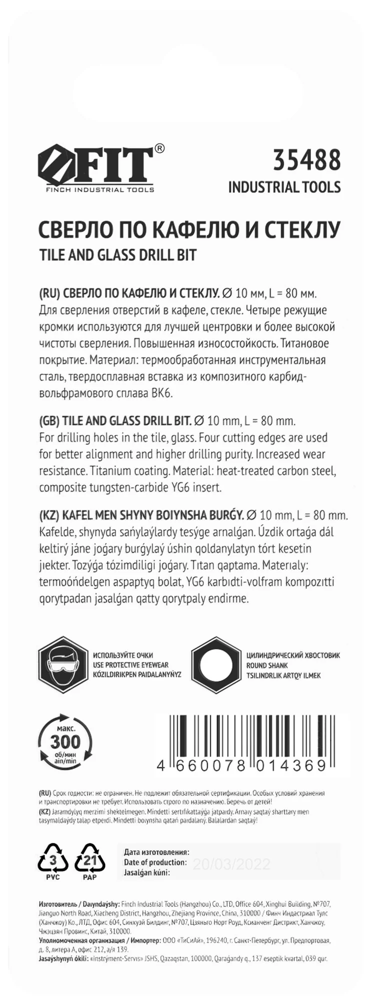 Сверло FIT с четырьмя режущими кромками идеально подходит для сверления отверстий в стекле и кафельной плитке. Используйте его для выполнения точных и аккуратных отверстий при монтаже сантехники или креплении декоративных элементов.