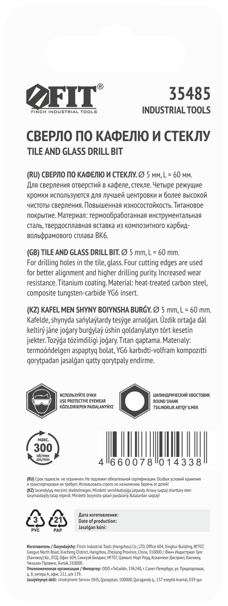 Сверло FIT с размером 5х60 мм идеально подходит для создания точных отверстий в кафеле и стекле. Оно поможет вам быстро и качественно выполнить работы по установке или ремонту, обеспечивая аккуратность и отсутствие сколов.