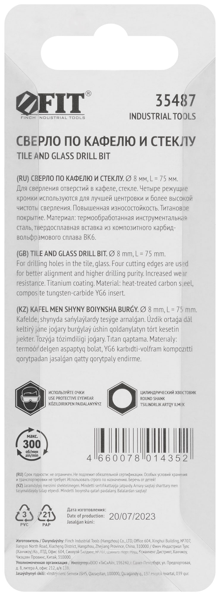 Выберите сверло FIT 35487, чтобы обеспечить точность и надежность при работе с кафелем и стеклом.